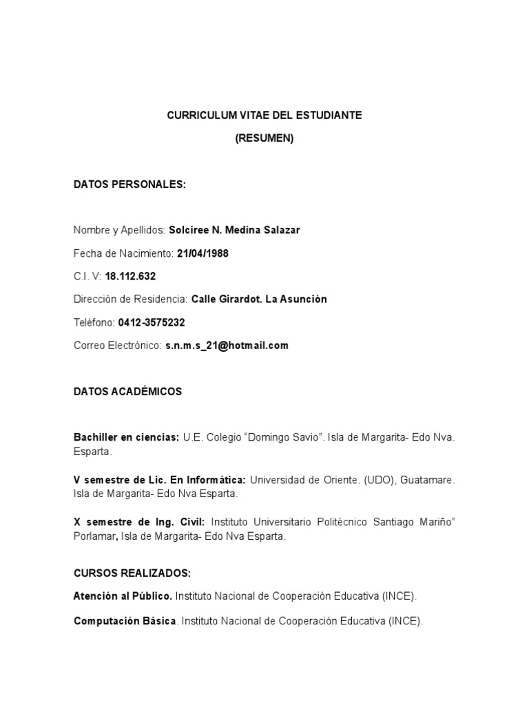 Curriculum Vitae Del Estudiante Pdf