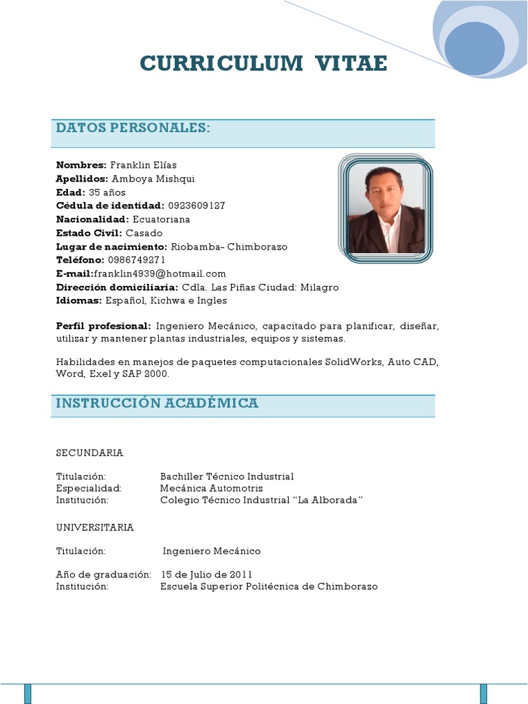 Judul : Curriculum Vitae De Un Mecanico Automotriz Pdf
