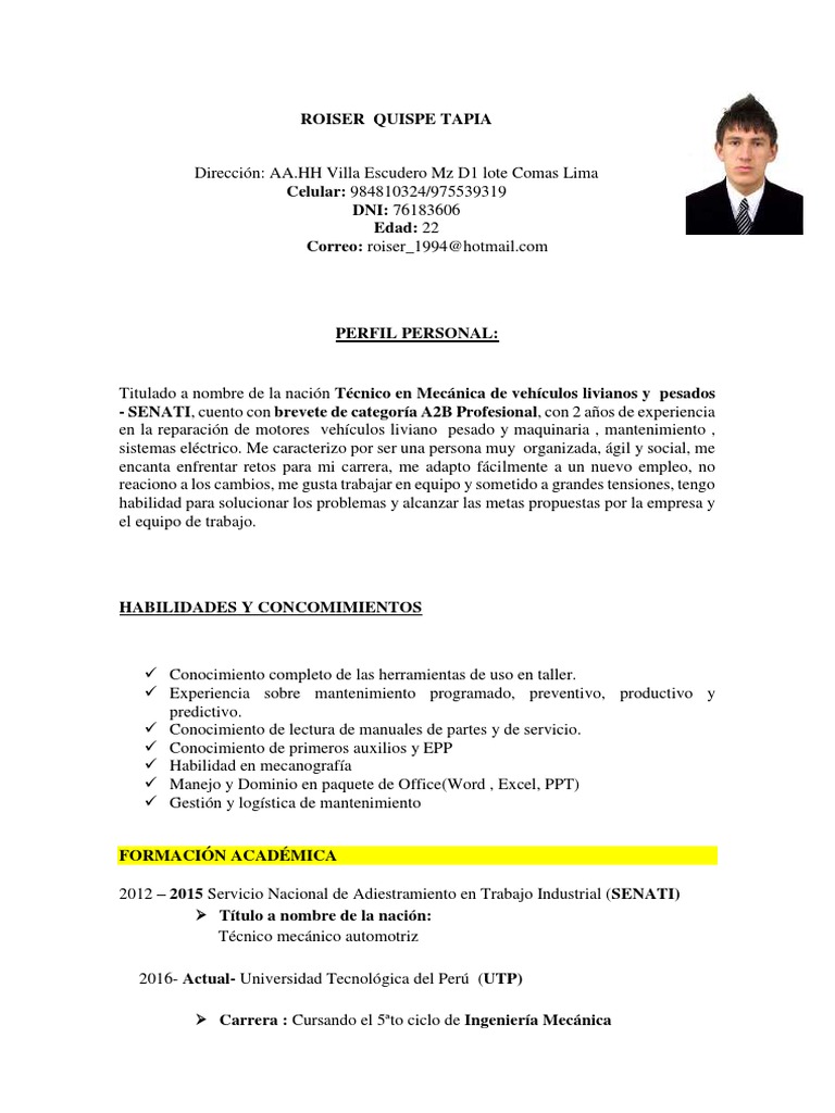 link : Curriculum Vitae De Un Mecanico Automotriz Pdf