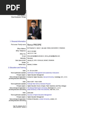 Europass Rp Cv Sample Pdf Romania Brussels