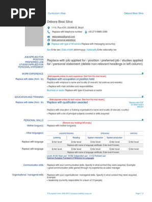 Modelo Europeu De Curriculum Vitae Pdf Download Gratis
