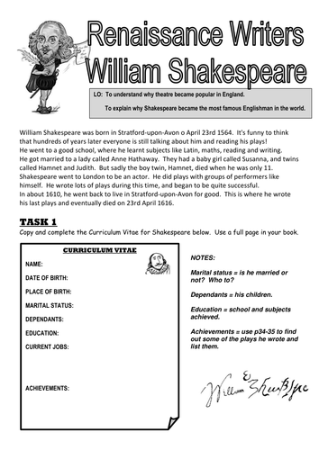 Lessons are designed to be fun accessible and engaging. Shakespeares Curriculum Vitae - If you are looking for professional expert writers then our service is worth checking out. All the Worlds a Stage.